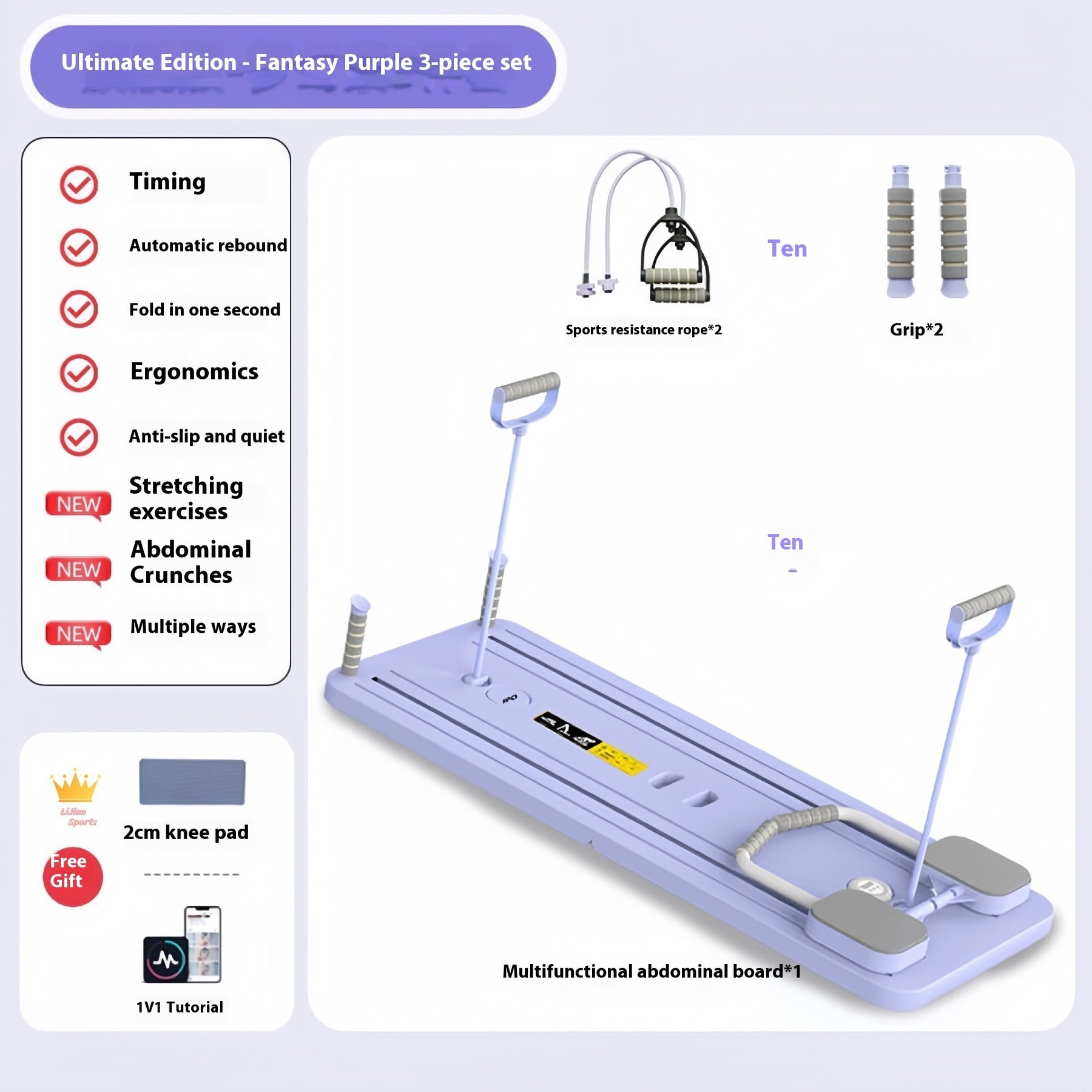 Product information: Color: [standard-purple]] Material: pp Weight: 300kg Product Size: 106*41 * 7cm Product Use: leg practice, hip practice, waist and abdomen, arms, straight back